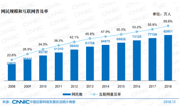 According to CNNIC The 43rd China Statistical Report on Internet Development in Feb 2019, there are now 829 million internet users in China by December 2018, and 817 million mobile internet users in China by December 2018, accounting for 98.6% of the total internet users population. To put this into context, compare the figure to the USA, where an estimated 300 million people are online.